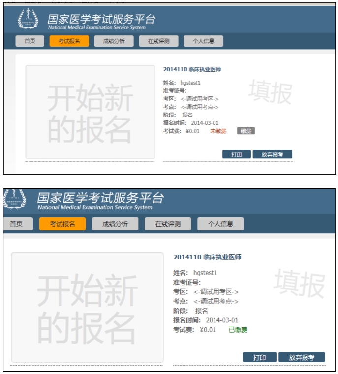 對于未在規(guī)定時間內(nèi)完成網(wǎng)上繳費的考生,視為自愿放棄報名,不能參加醫(yī)師資格考試實踐技能考試。對于繳費后因個人原因無法參加考試的考生一律不予退費。
