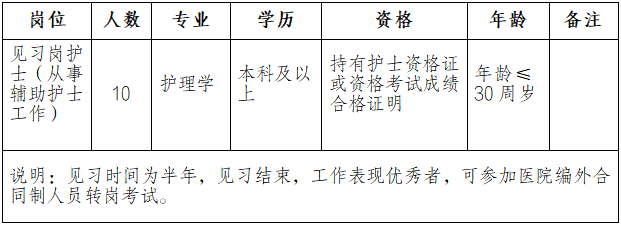 3.見習崗護士的報名人數(shù)上限為招聘崗位數(shù)的3:1,即報名人數(shù)達到30人時截止報名。