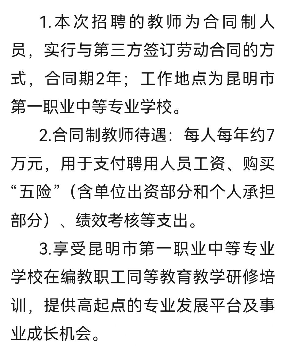 云南省昆明市第一職業(yè)中等專業(yè)學校2025年公開招聘合同制教師公告