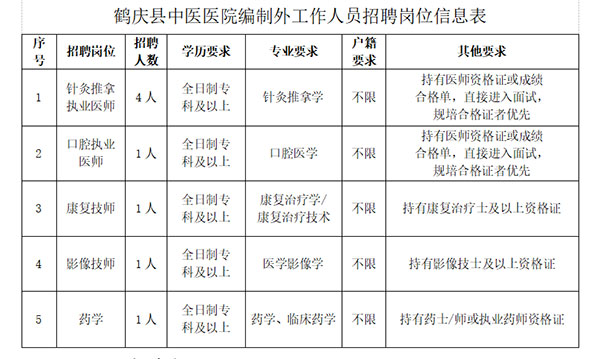 3.報名地點:鶴慶縣中醫(yī)醫(yī)院辦公室(門診樓五樓)。
