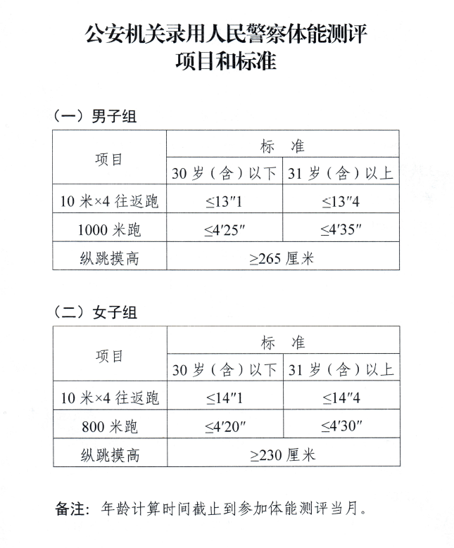 體能測評參照《公安機關(guān)錄用人民警察體能測評項目和標準》規(guī)定執(zhí)行。
