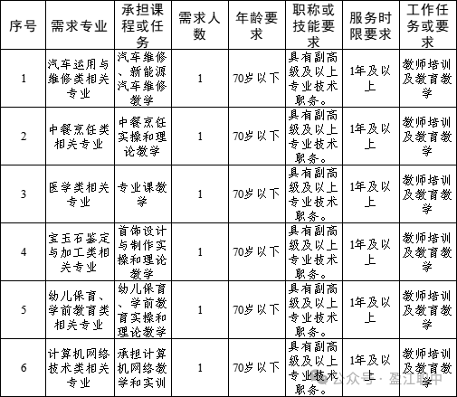 根據云南省教育廳發(fā)布的《云南省教育廳關于2025年春季招募銀齡教師支持職業(yè)教育的公告》,結合州縣相關會議精神,2025年盈江縣職業(yè)高級中學招募銀齡教師6人。