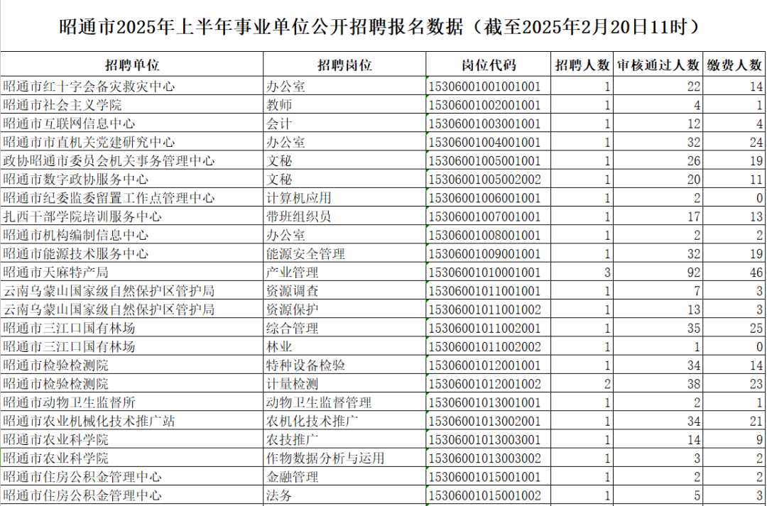 2025年昭通市事業(yè)單位招聘報(bào)名數(shù)據(jù)(截至2月20日11時(shí))