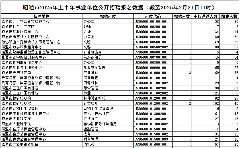 2025年昭通市事業(yè)單位招聘報(bào)名數(shù)據(jù)(截至2月21日11時(shí))