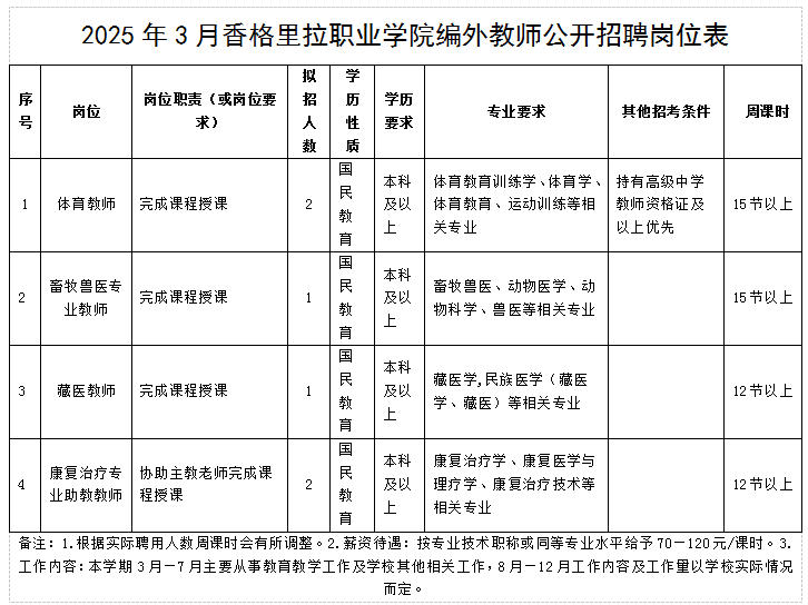 香格里拉職業(yè)學(xué)院公開招聘編外教師公告
