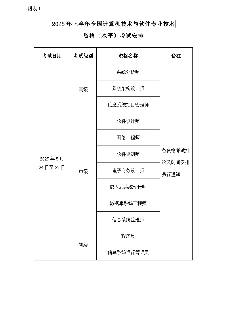 一、《2025年上半年全國(guó)計(jì)算機(jī)技術(shù)與軟件專業(yè)技術(shù)資格(水平)考試安排》