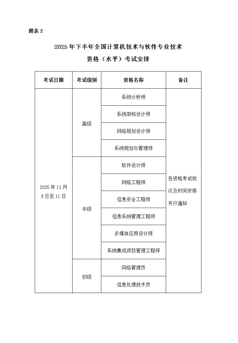 二、《2025年下半年全國(guó)計(jì)算機(jī)技術(shù)與軟件專業(yè)技術(shù)資格(水平)考試安排》