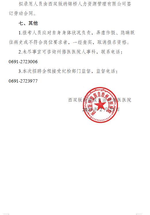 2025年西雙版納州傣醫(yī)醫(yī)院招聘臨時(shí)勞務(wù)人員公告