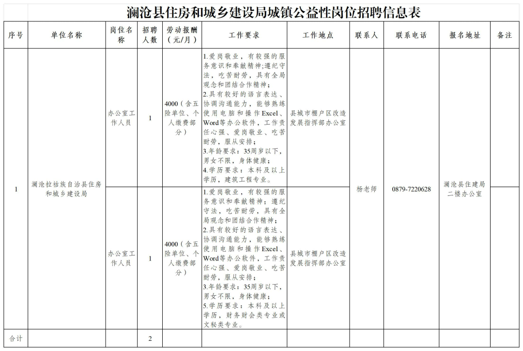 瀾滄縣住房和城鄉(xiāng)建設(shè)局關(guān)于招聘公益性崗位人員的公告