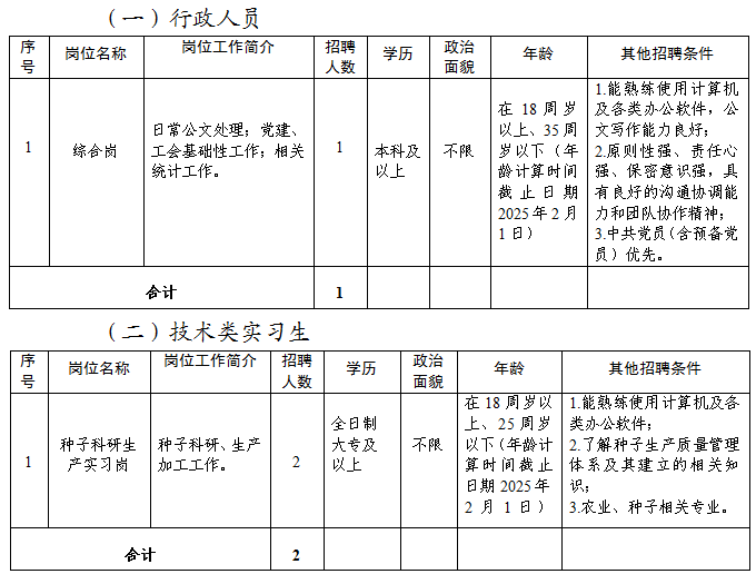 云南種業(yè)集團有限責任公司2025年行政人員招聘和技術類實習生接收公告