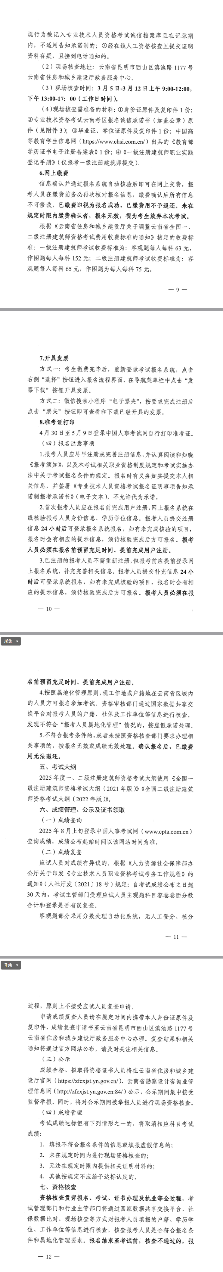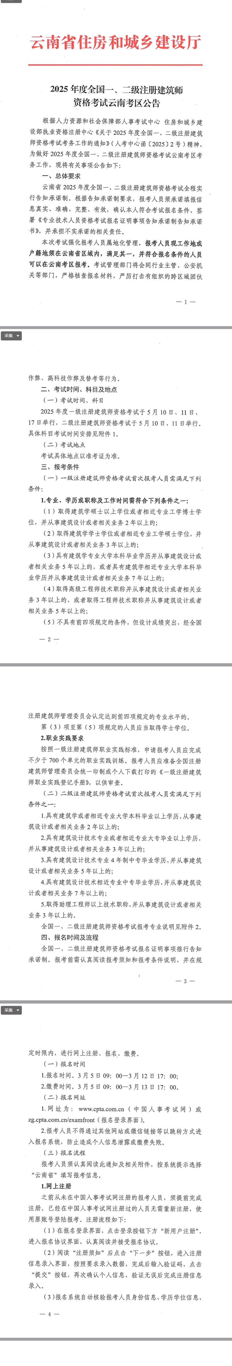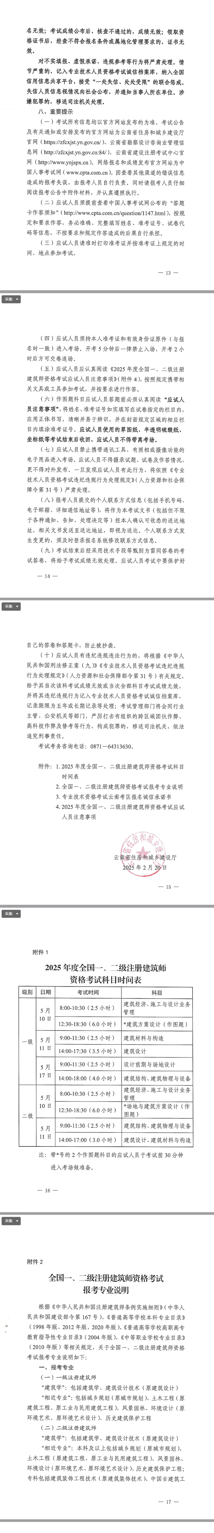 2025年度全國一、二級注冊建筑師資格考試云南考區(qū)公告