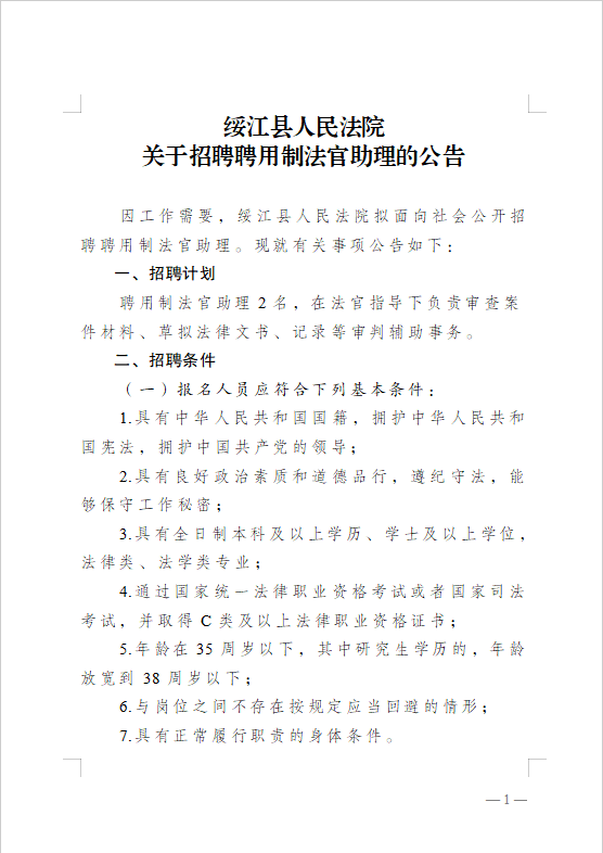 綏江縣人民法院關(guān)于招聘聘用制法官助理的公告