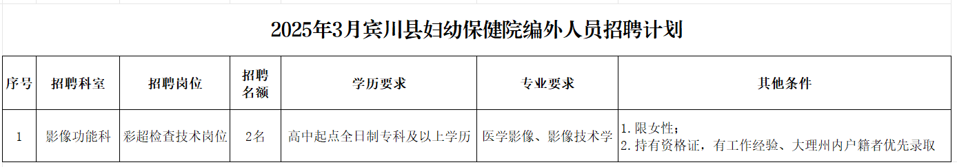 賓川縣婦幼保健院2025年面向社會(huì)公開招聘編外人員公告