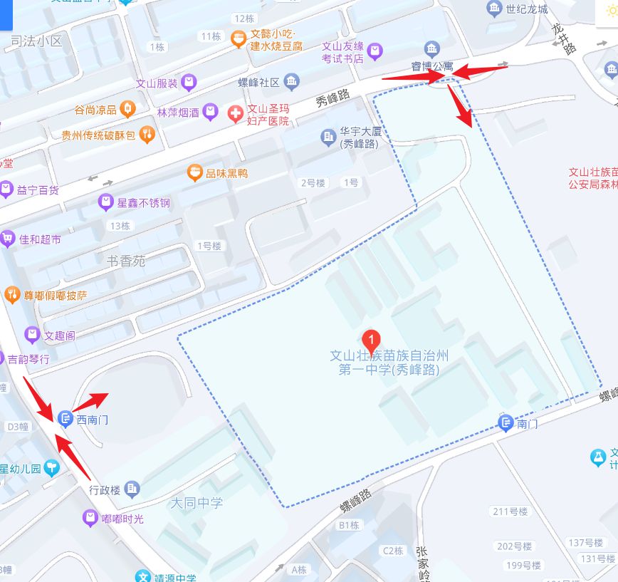 (一)文山州第一中學(xué)。考點(diǎn)地址:文山市開化街道秀峰路158號(hào),乘坐1路、9路、10路公交車可達(dá),地圖鏈接:https://j.map.baidu.com/e5/vC5,位置圖如下: