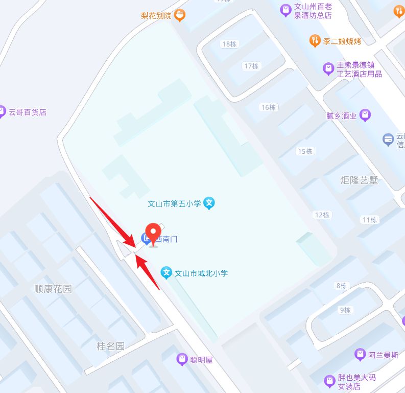 (三)文山市城南中學(xué)。考點(diǎn)地址:文山市新平街道小溝絞村,乘坐15路、37路公交車可達(dá),地圖鏈接:https://j.map.baidu.com/12/kl6f,位置圖如下: