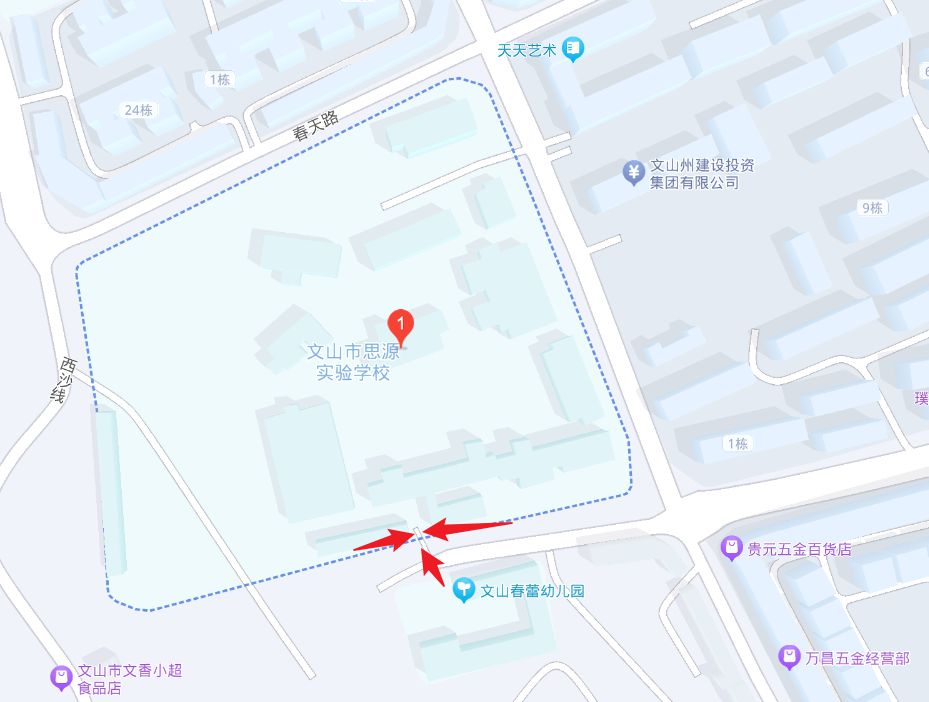 (七)文山市思源實(shí)驗(yàn)學(xué)校。考點(diǎn)地址:文山市思源路1號(hào),乘坐1路公交車可達(dá),地圖鏈接:https://j.map.baidu.com/ff/cmPu,位置圖如下: