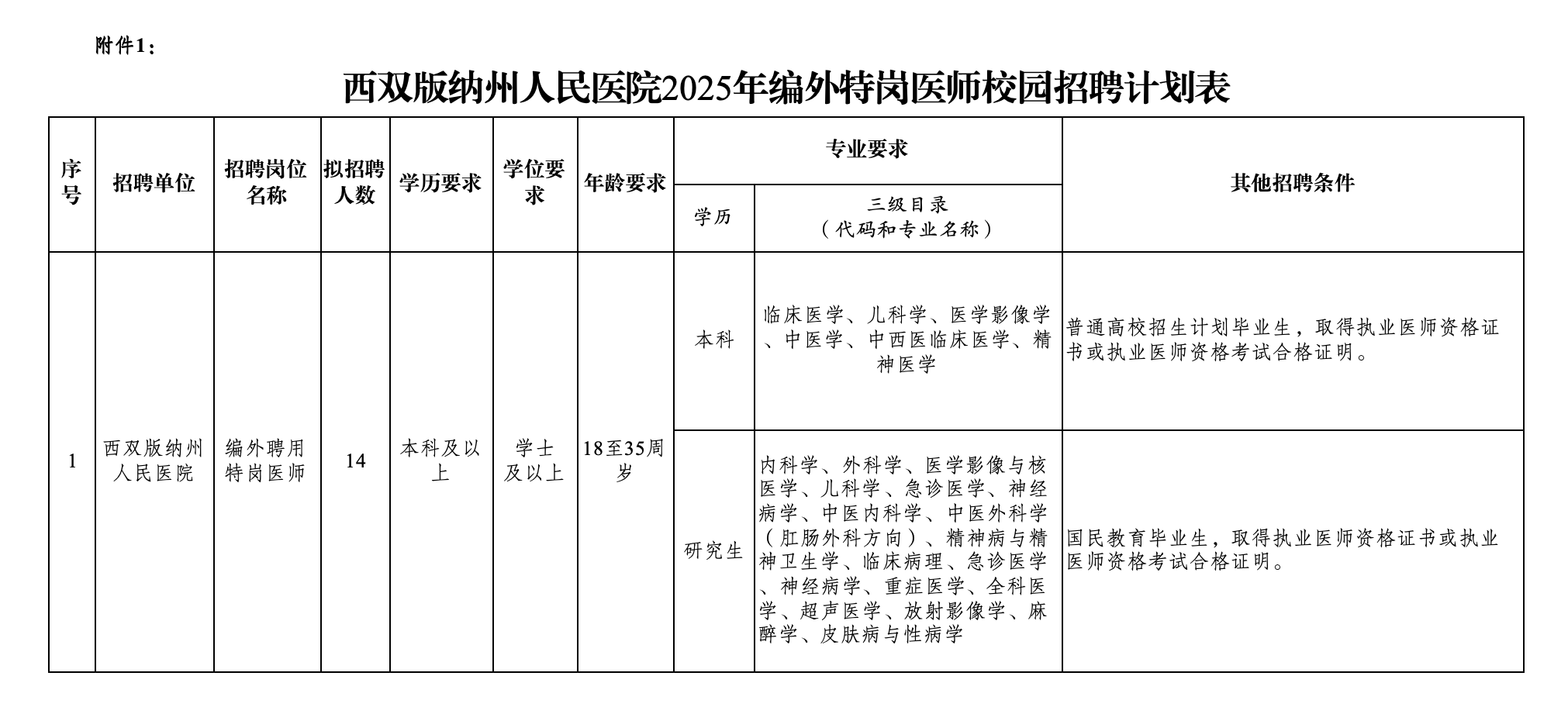 西雙版納州人民醫(yī)院2025年3月編外聘用特崗醫(yī)師校園招聘公告