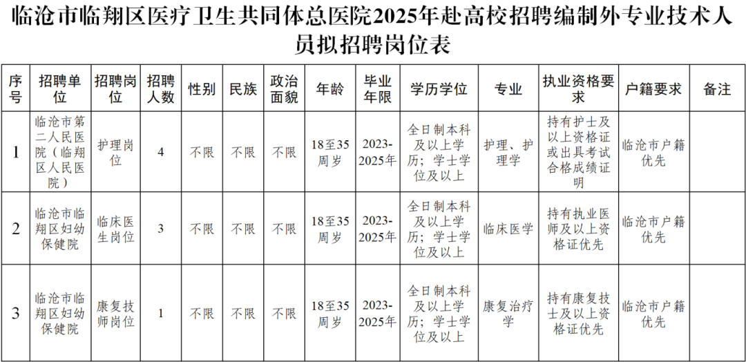 附件1:臨翔區(qū)醫(yī)共體總醫(yī)院2025年赴高校招聘編制外專業(yè)技術(shù)人員擬招聘崗位表.xlsx