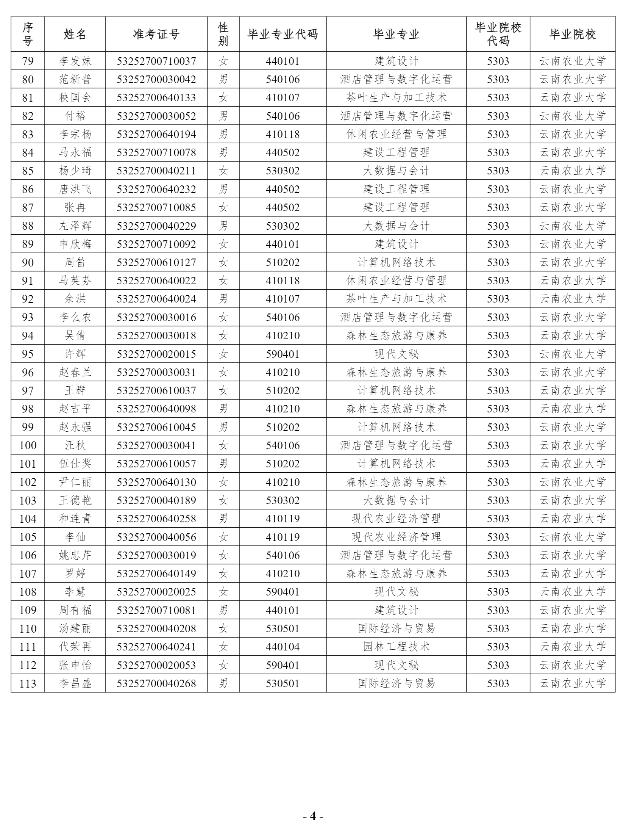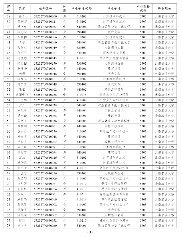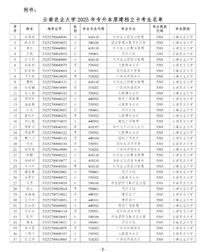 附件:云南農(nóng)業(yè)大學2025年專升本原建檔立卡考生名單