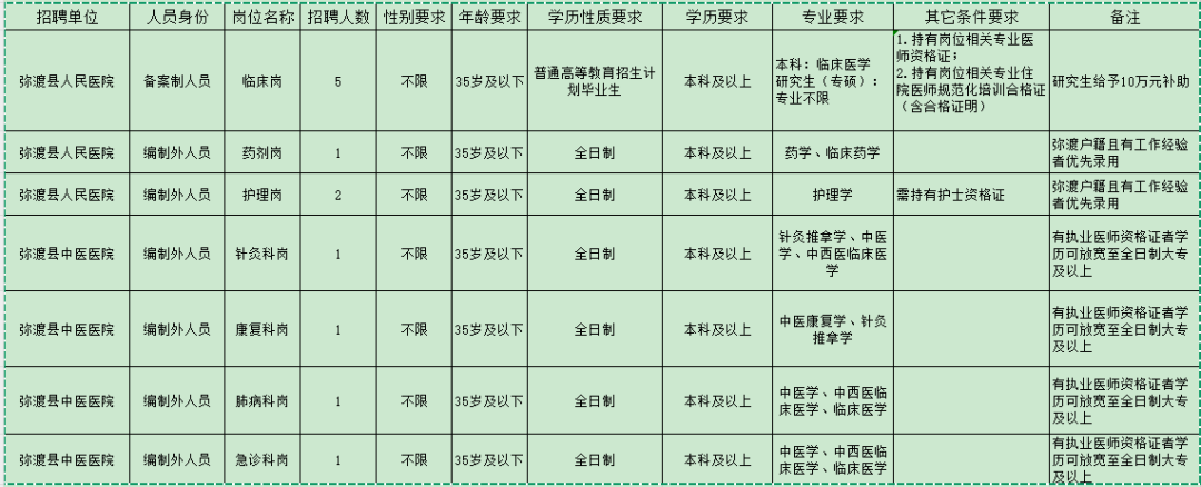 為進(jìn)一步加強(qiáng)醫(yī)院人才隊(duì)伍建設(shè),滿足醫(yī)院學(xué)科發(fā)展的人才需求,提升醫(yī)院醫(yī)療服務(wù)能力,經(jīng)彌渡縣緊密型醫(yī)共體總醫(yī)院院長辦公會(huì)、黨委會(huì)研究決定,并報(bào)請(qǐng)上級(jí)主管部門審批同意,采取公開招聘編制外及備案制衛(wèi)生專業(yè)技術(shù)人員12人,現(xiàn)將有關(guān)事宜通知如下: