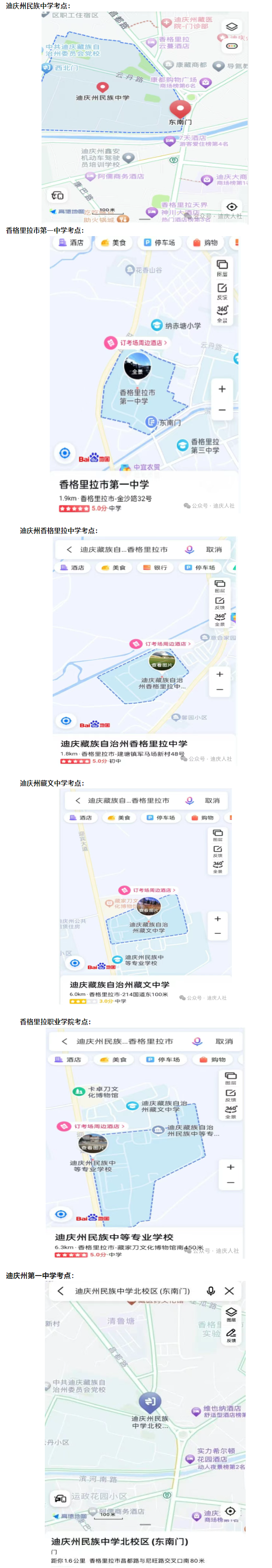 請考生認真查閱本人準考證上的考點(共設迪慶州民族中學、香格里拉市第一中學、迪慶州香格里拉中學、迪慶州藏文中學、香格里拉職業(yè)學院、迪慶州第一中學(原迪慶州民族中學北校區(qū))6個考點)、考場號和座位號,不要走錯考點、考場,不要坐錯座位。建議考生提前一天熟悉考場位置和交通路線,提前到達考場。
