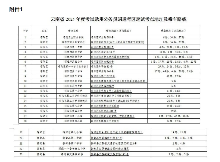 附件:1.云南省2025年度考試錄用公務(wù)員昭通考區(qū)筆試考點地址及乘車路線