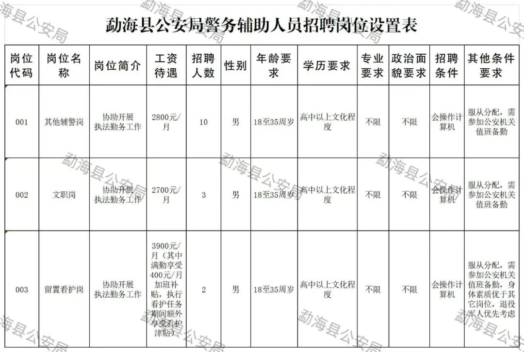 勐??h公安局警務(wù)輔助人員招聘公告