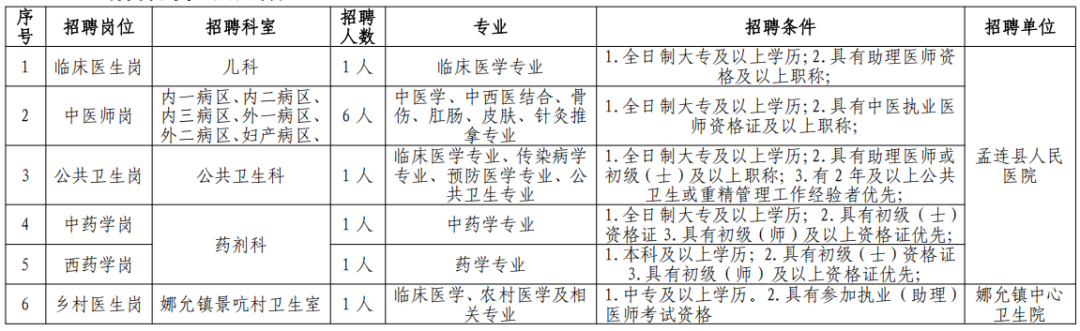 孟連縣人民醫(yī)院微信公眾號(hào)公開(kāi)發(fā)布招聘公告