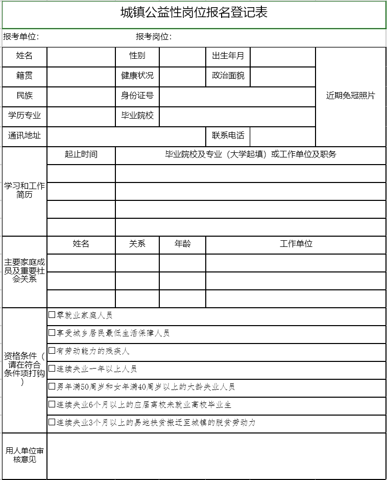 附件:城鎮(zhèn)公益性崗位報(bào)名登記表.xlsx