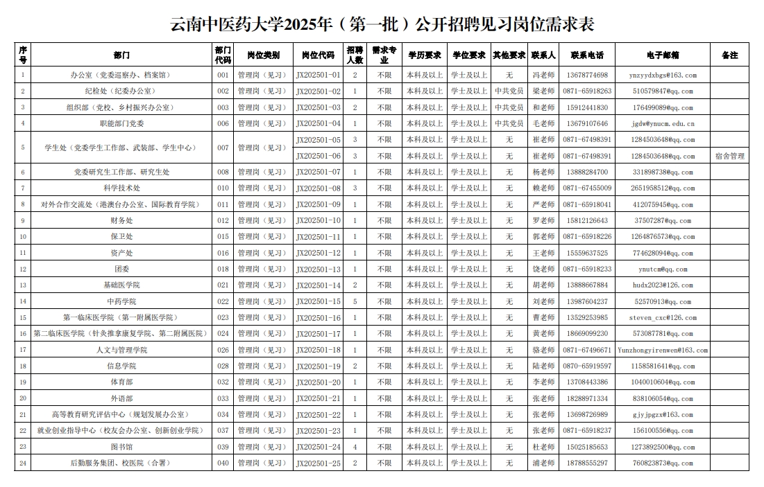 附件:云南中醫(yī)藥大學(xué)2025年(第一批)公開(kāi)招聘見(jiàn)習(xí)崗位需求表.pdf