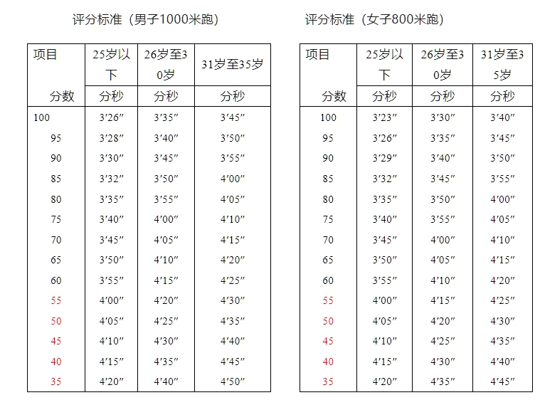筆試結束后,根據成績從高分到低分的順序,確定進入體能測試人選,測試項目均需合格,方可進入下一環(huán)節(jié),體能測試參照《警務輔助人員招聘體能測試項目及標準》計算成績(詳見附件1)。體能測試具體時間和地點另行通知。