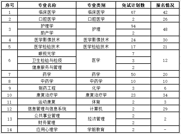 三、專升本免試考生情況