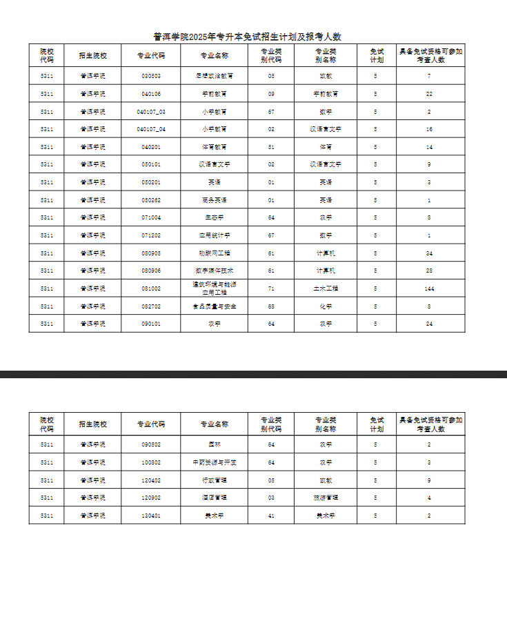 附件【普洱學(xué)院2025年專升本免試招生計劃及報考人數(shù).pdf】