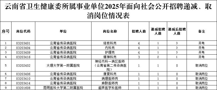 附件:云南省衛(wèi)生健康委所屬事業(yè)單位2025年面向社會公開招聘遞減、取消崗位情況表