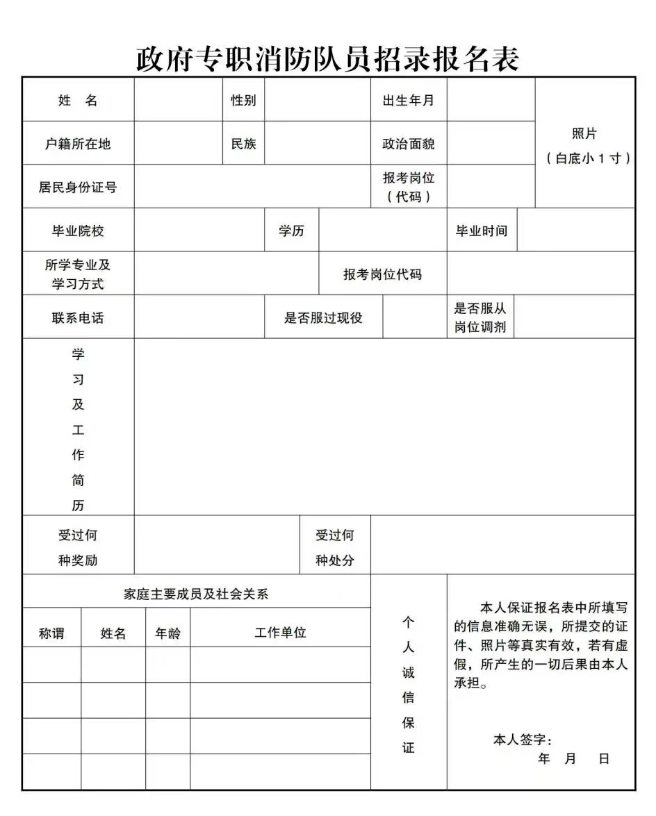 附件1:政府專職消防隊員招錄報名表