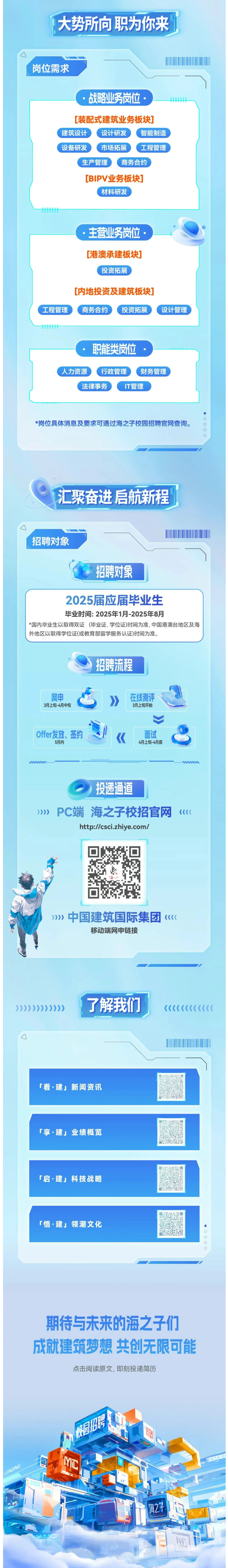 中國建筑國際集團2025『海之子』春季校園招聘全面啟動 來源:https://mp.weixin.qq.com/s/m_2_d2MM8yAef-PREa6HOQ