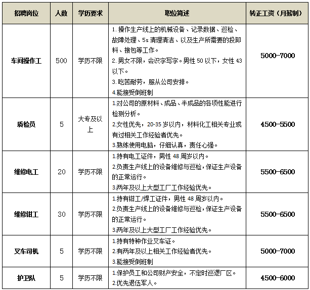 招聘各崗位:薪資構(gòu)成=崗位月薪+考核獎金,考核獎金分為成本、質(zhì)量、5s巡檢;考核獎金最高可達1000+月/月,做得越好,得的越多!趕快加入,成為公司的一員吧??!