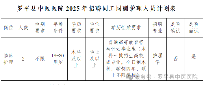 羅平縣中醫(yī)醫(yī)院2025年同工同酬編制外護(hù)理人員招聘公告