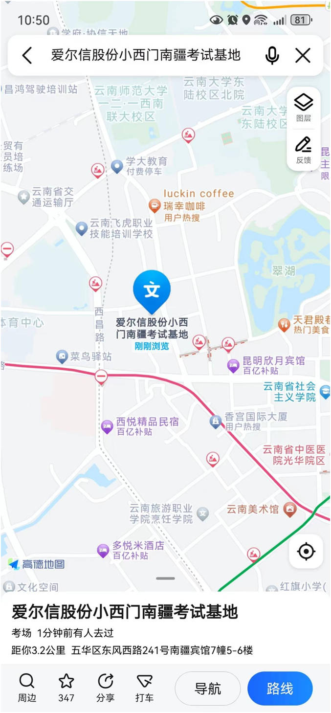 愛(ài)爾信股份小西門(mén)南疆考試基地(截圖)