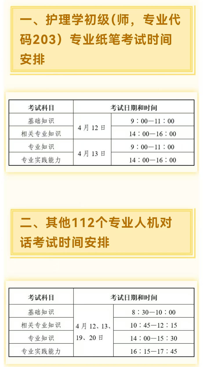 2.護(hù)理學(xué)中級(jí)(專(zhuān)業(yè)代碼368)專(zhuān)業(yè)分批次考試(4月13日、19日、20日),考生只參考其中1天,請(qǐng)注意查看準(zhǔn)考證上的考試時(shí)間,切勿錯(cuò)過(guò)考試。