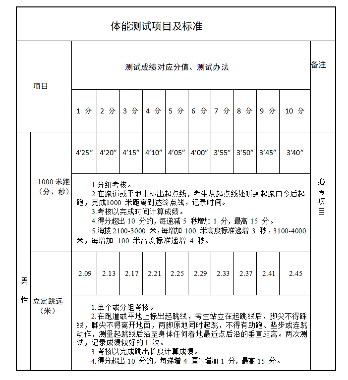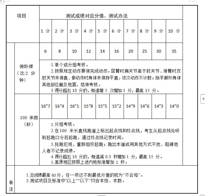 體能測試項(xiàng)目及標(biāo)準(zhǔn)