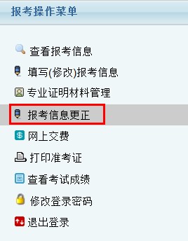 1.使用姓名和身份證號(hào)登錄報(bào)名系統(tǒng),進(jìn)入后,點(diǎn)擊左側(cè)的信息更正選項(xiàng)