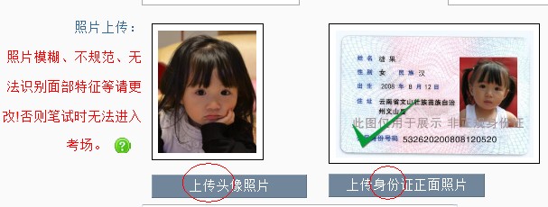 故請(qǐng)各位考生于2013年6月10日前登錄考試報(bào)名系統(tǒng),檢查自己上傳的個(gè)人頭像照片和身份證照片是否符合要求,若存在模糊、變形等不符合報(bào)名要求的情況,請(qǐng)重新上傳新的照片。