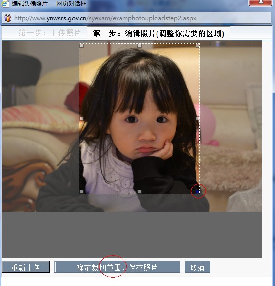 3.在上傳的第二步中,選定你要裁切的范圍,點(diǎn)確定即可。上傳完畢后,你可以看看你的照片是否清晰。