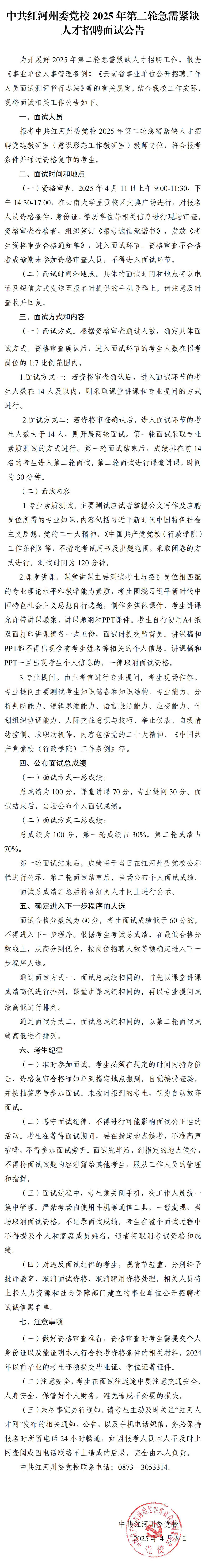 2025年中共紅河州委黨校第二輪急需緊缺人才招聘面試公告