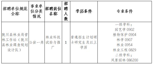 隴川縣林業(yè)局營林工作站專業(yè)技術人員1名,具體崗位及招聘條件等詳見下表。