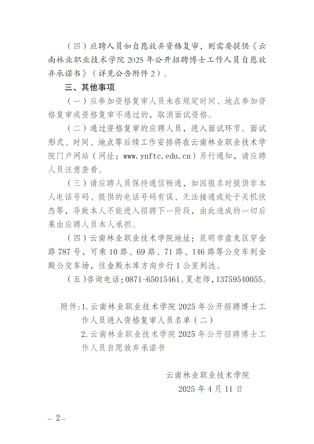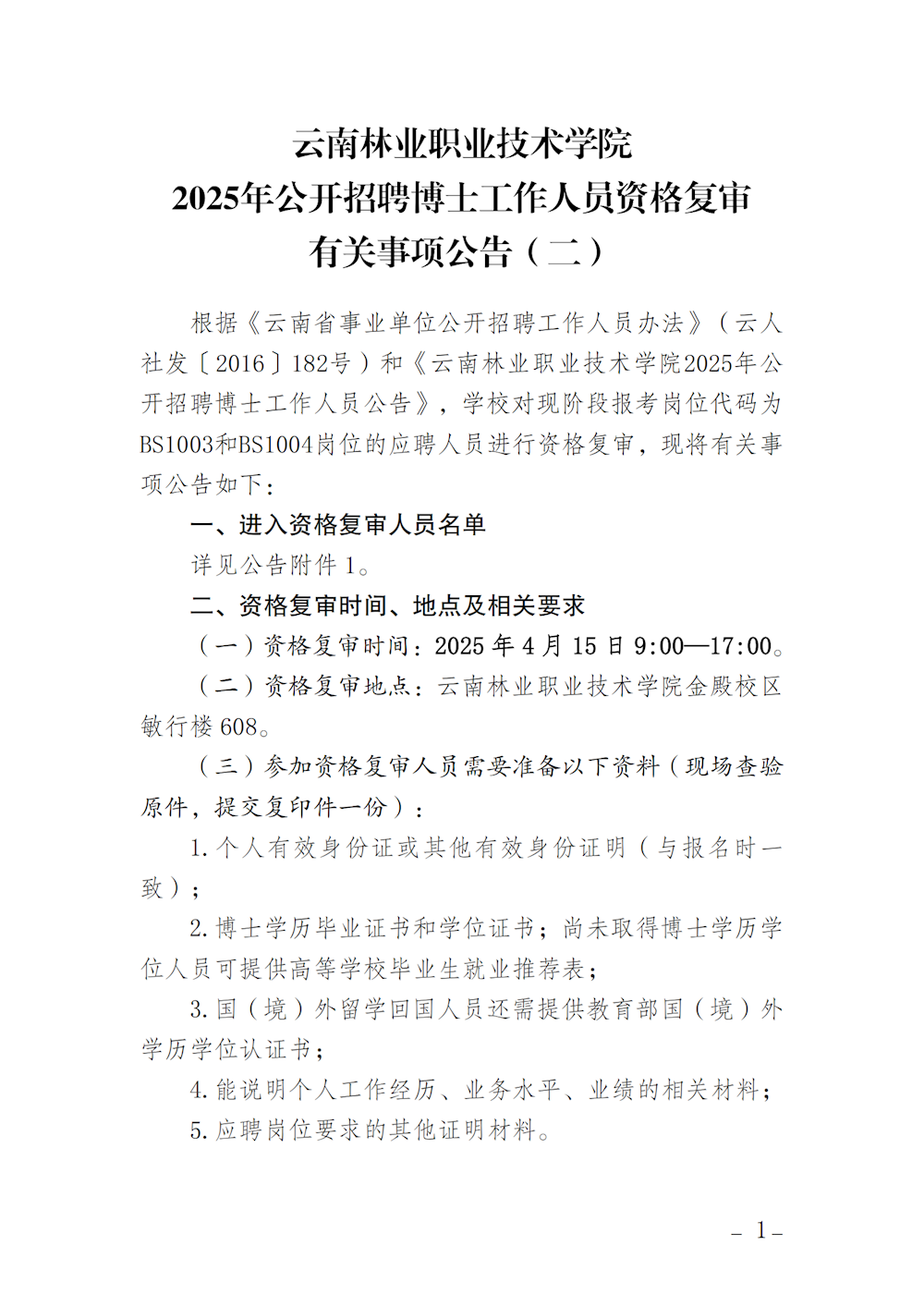 附件:1.云南林業(yè)職業(yè)技術(shù)學(xué)院2025年公開招聘博士工作人員進(jìn)入資格復(fù)審人員名單(二).pdf