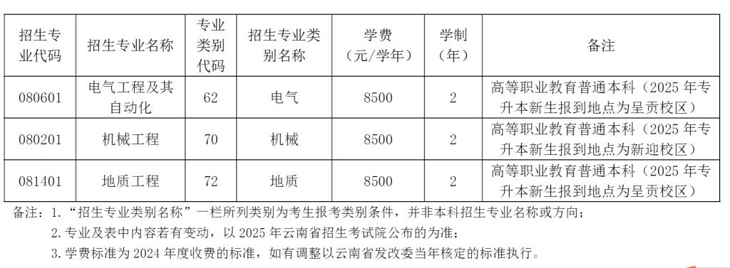 4.電氣工程及其自動(dòng)化、地質(zhì)工程2個(gè)專業(yè),2025年專升本新生報(bào)到地點(diǎn)為呈貢校區(qū);機(jī)械工程專業(yè)2025年專升本新生報(bào)到地點(diǎn)在新迎校區(qū)。
