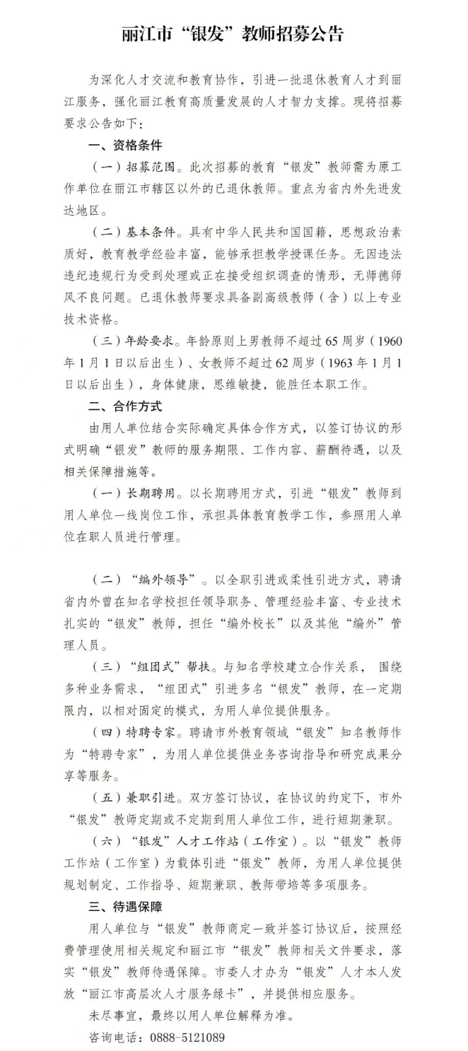 麗江市“銀發(fā)”教師招募公告