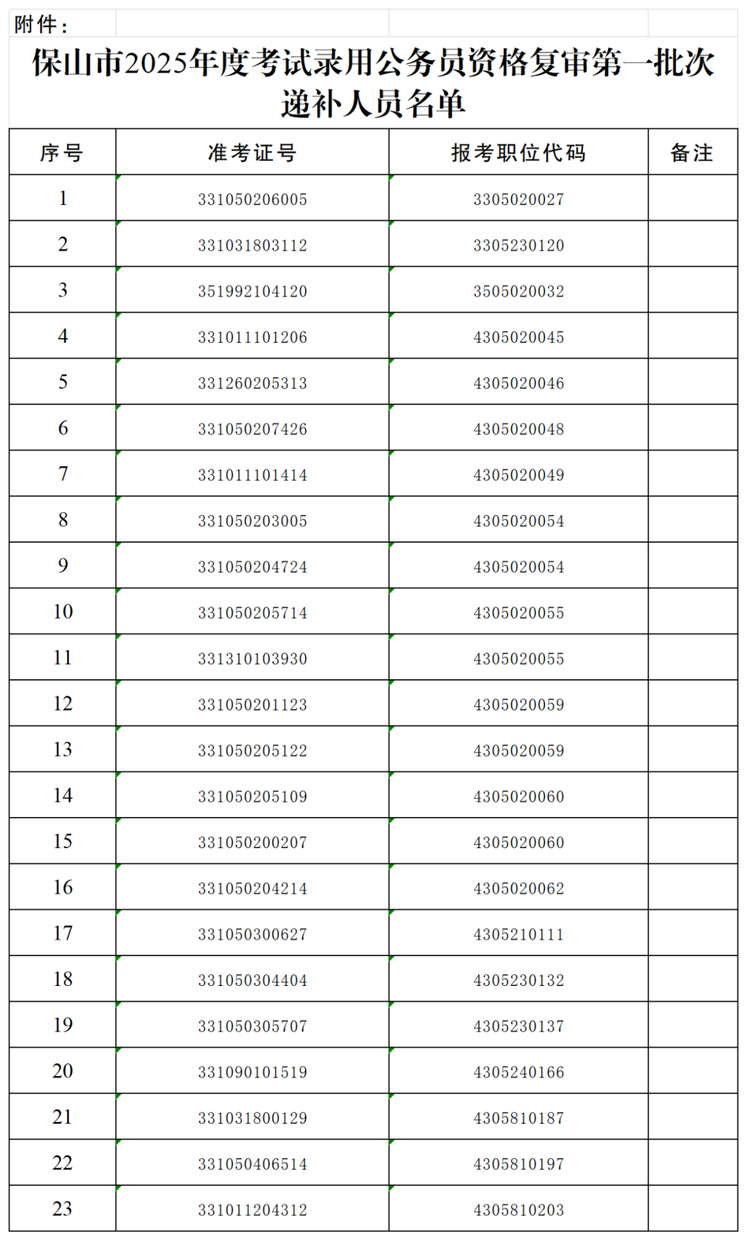 附件:保山市2025年度考試錄用公務(wù)員資格復(fù)審第一批次遞補(bǔ)人員名單
